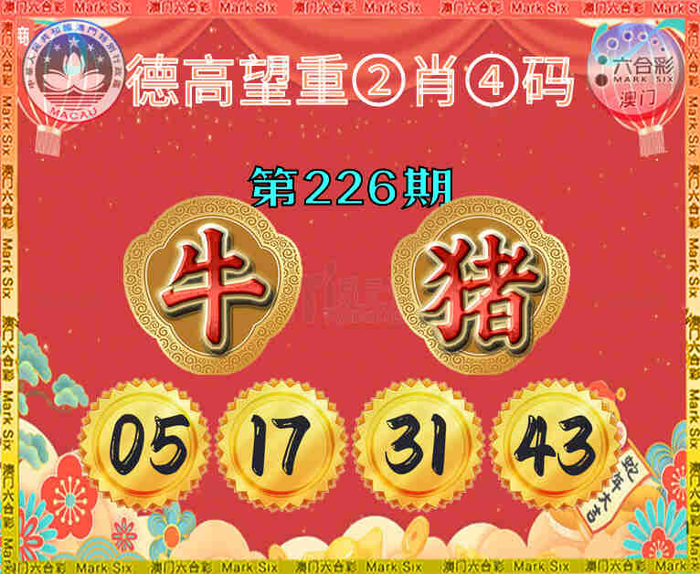 226期:《德高望重》 🗡②肖④码🗡【牛】【05.17.31.43】开:猪31