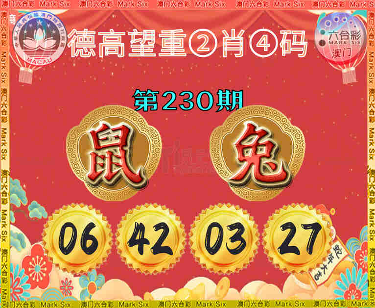 230期:《德高望重》 🗡②肖④码🗡【鼠】【06.42.03.27】开:兔39