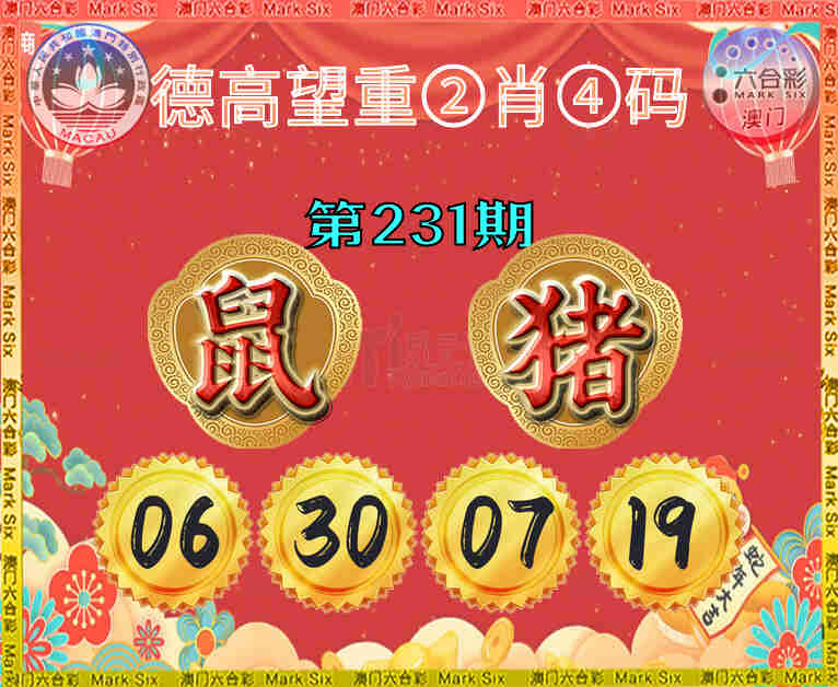 231期:《德高望重》 🗡②肖④码🗡【鼠猪】【06.30.07.19】开:龙38