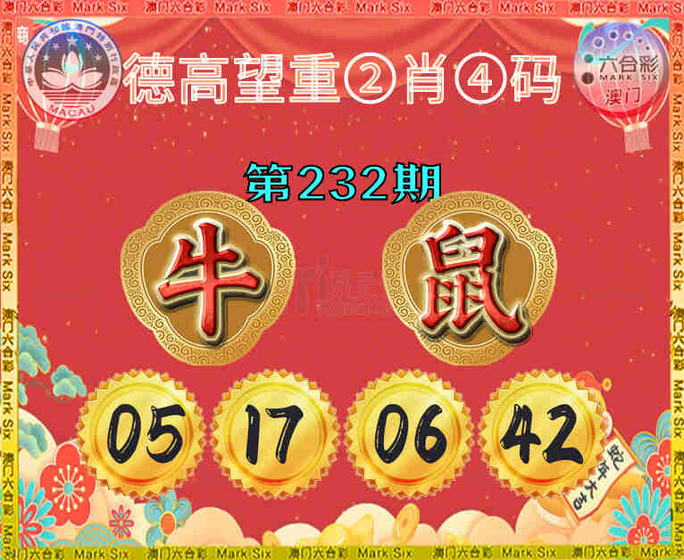 232期:《德高望重》 🗡②肖④码🗡【牛】【05.17.06.42】开:鼠42