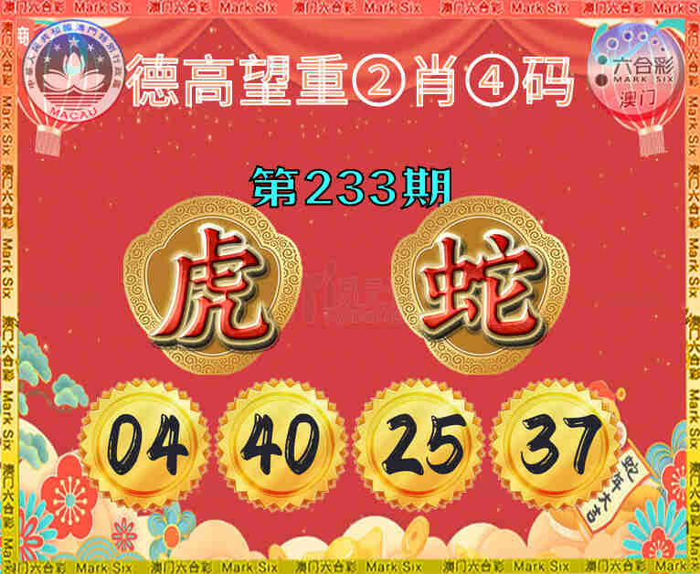 233期:《德高望重》 🗡②肖④码🗡【虎】【04.40.25.37】开:蛇37