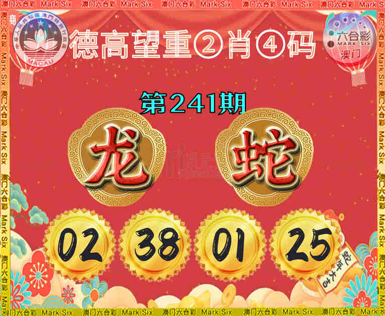 241期:《德高望重》 🗡②肖④码🗡【龙】【02.38.01.25】开:蛇01