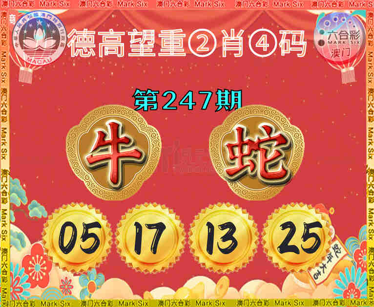 247期:《德高望重》 🗡②肖④码🗡【牛】【05.17.13.25】开:蛇25