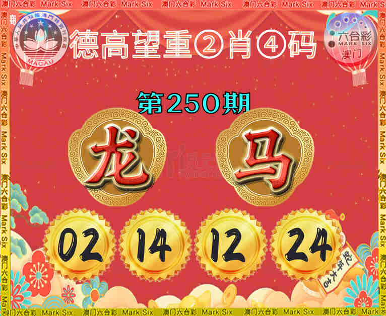 250期:《德高望重》 🗡②肖④码🗡【龙】【02.14.12.24】开:马12