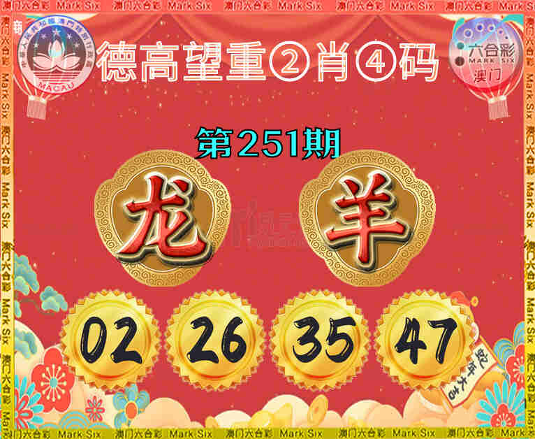 251期:《德高望重》 🗡②肖④码🗡【龙】【02.26.35.47】开:羊35
