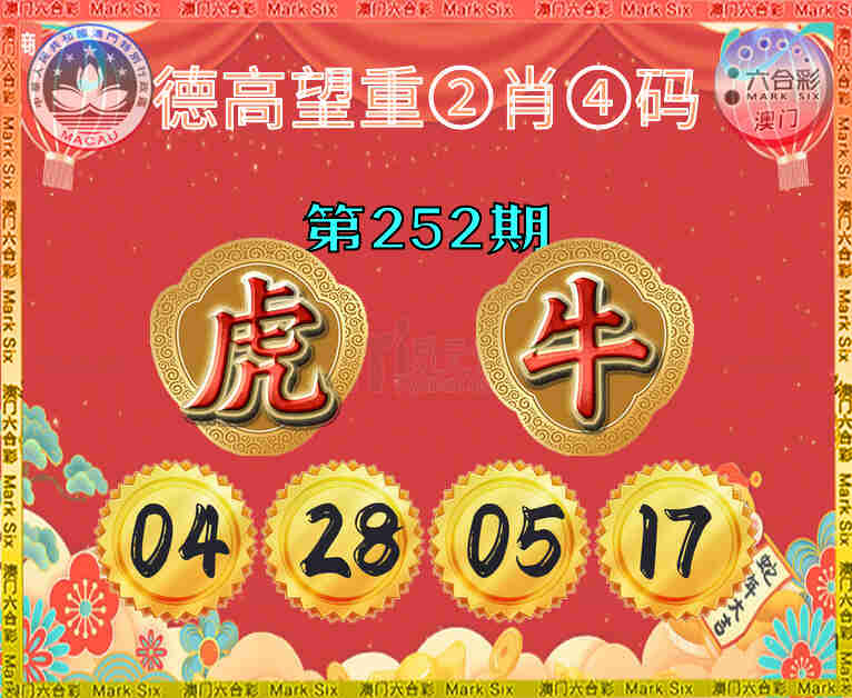 252期:《德高望重》 🗡②肖④码🗡【虎牛】【04.28.05.17】开:羊23