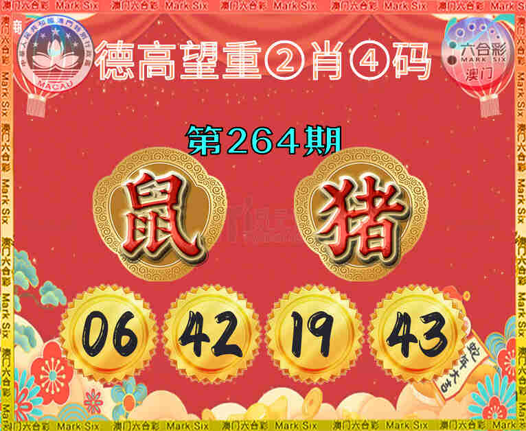 264期:《德高望重》 🗡②肖④码🗡【鼠】【06.42.19.43】开:猪43