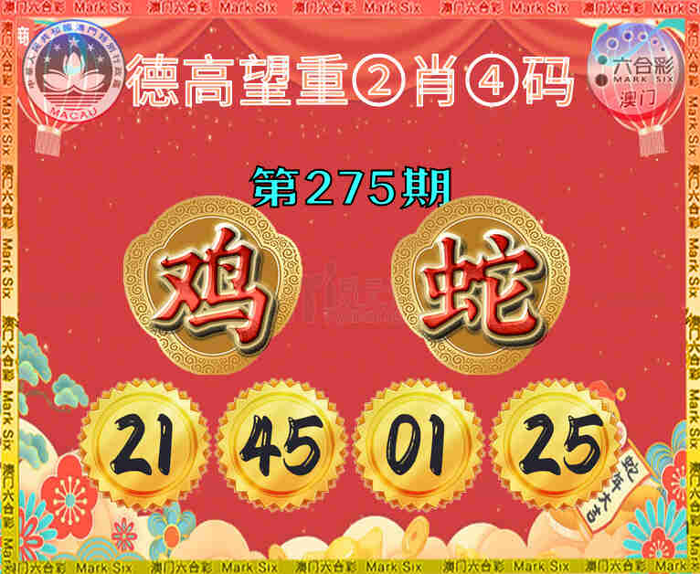 275期:《德高望重》 🗡②肖④码🗡【蛇】【21.45.01.25】开:鸡45