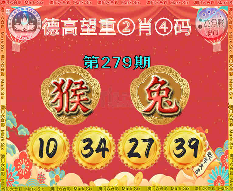 279期:《德高望重》 🗡②肖④码🗡【猴】【10.34.27.39】开:兔27
