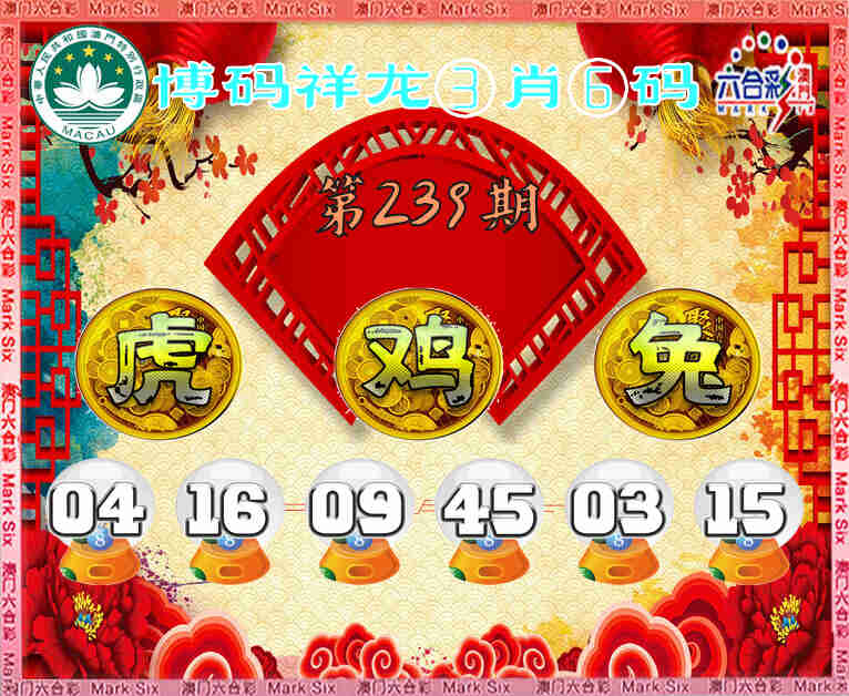 239期:【博码祥龙】 🏃‍♀️③肖⑥码🏃‍♀️【鸡兔】开:虎04