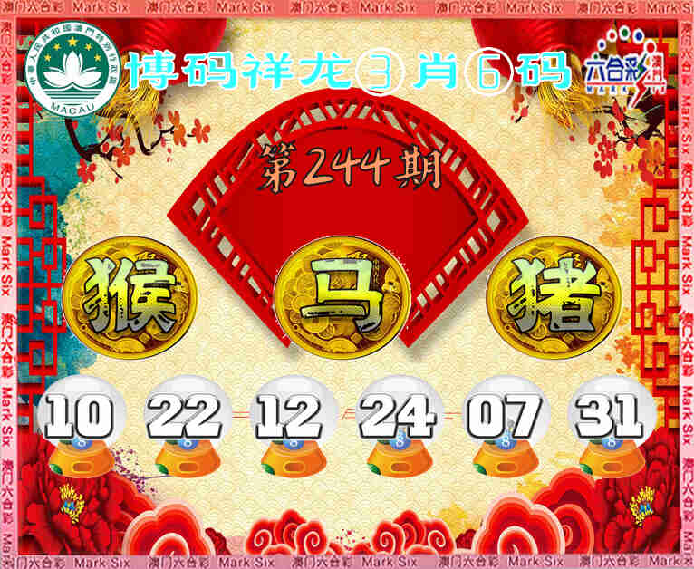 244期:【博码祥龙】 🏃‍♀️③肖⑥码🏃‍♀️【猴猪】开:马24